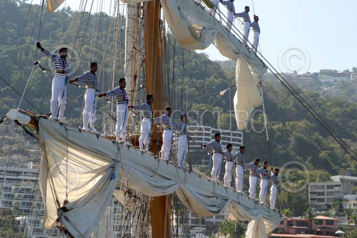 ACAPULCO, GUERRERO, 16NOVIEMBRE2008.- Marinos arribaron este día al puerto de Acapulco, en el buque escuela Cuauhtémoc de la Armada de México. FOTO: ADOLFO JASSO/CUARTOSCURO.COM