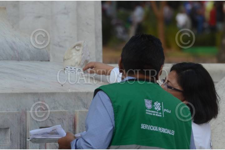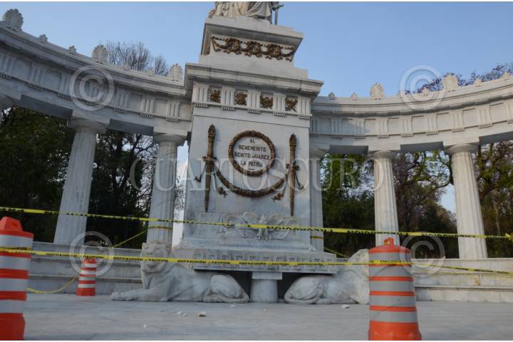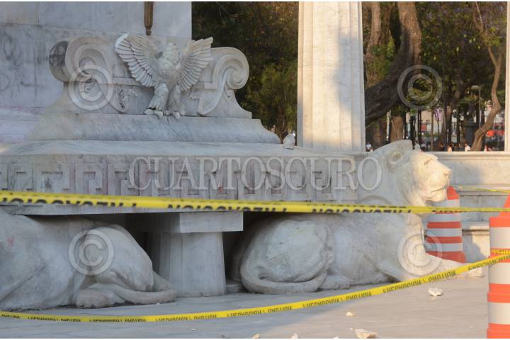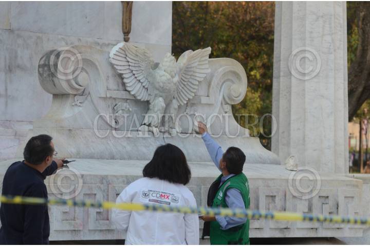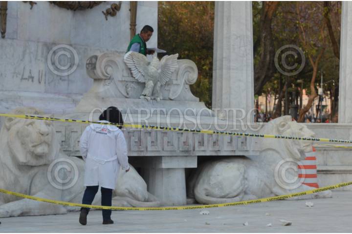 En la madrugada desconocidos dañaron la águila de mármol del Hemiciclo a Juárez