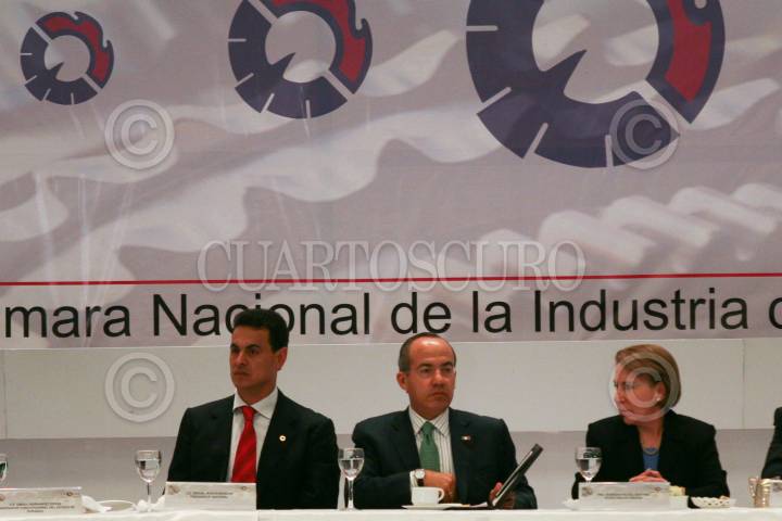 MEXÍCO D.F. 04MARZO2008.-El presidente, Felipe Calderón, acudio a un desayono con integrantes de la CANACINTRA con motivo de la inauguración de la LXVII Asamblea General Ordinaria de esta asociación.En la Imagen es acompañado por Ismael Hernádez gobernador del Estado de Durango y por Geogina Keccel titular de la Secretaría de Energía. FOTO: GUILLERMO PEREA/CUARTOSCURO.COM
