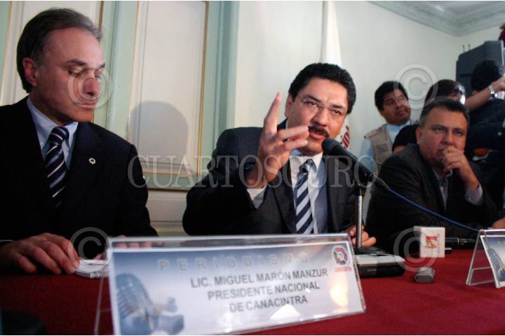 OAXACA, OAXACA 09OCTUBRE2008.- Miguel Maron Manssur, Presidente de la Cámara Nacional de a Industria de la Transformación (CANACINTRA), durante una mesa redonda con medios de nacionales y locales, en las que se abordo el tema de la economía nacional. FOTO: MAX NÚÑEZ/CUARTOSCURO.COM
