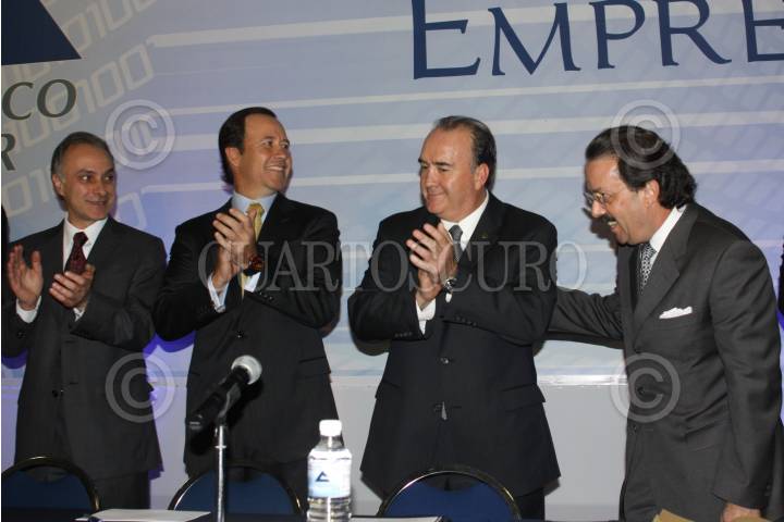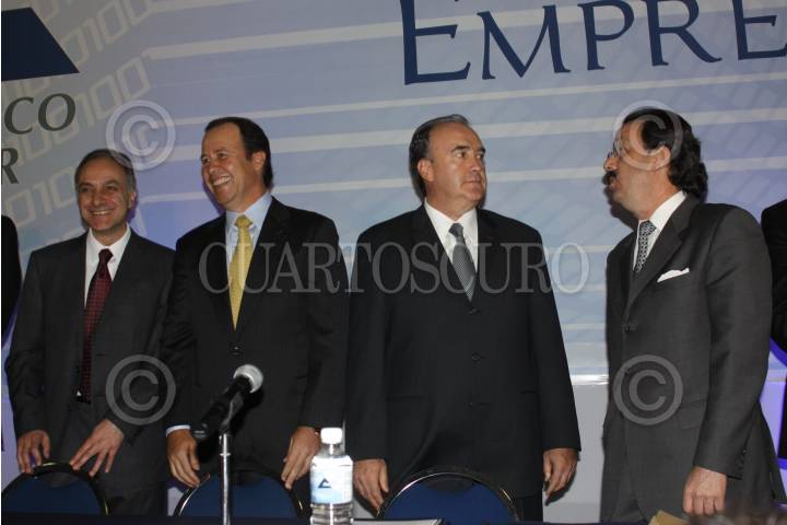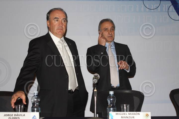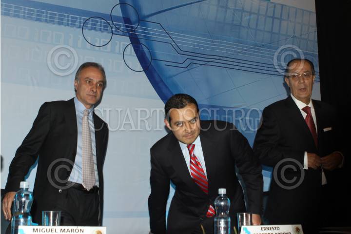 MÉXICO, D.F., 18MAYO2010.- Miguel Marón Manzur, Subsecretario para la Pequeña y Mediana Empresa de la Secretaría de Economía, Mario Sánchez Ruíz, presidente del Consejo Coordinador Empresarial, Jorge E. Dávila Flores, presidente de la Confederación de Cámaras Nacionales de Comercio, Servicios y Turismo y Juan Molinar Horcasitas, Secretario de Comunicaciones y Transportes, participaron en el "Foro de Tecnología Empresarial", organizado por la CONCANACO. FOTO: MOISÉS PABLO/CUARTOSCURO.COM