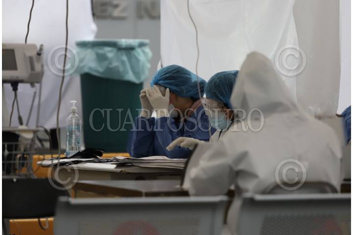 Personal de salud se nota cansado ya que continúa laborando las 24 hora en los distintos Módulos de Atención Respiratoria del Seguro Social, haciendo pruebas de detección de Covid-19.