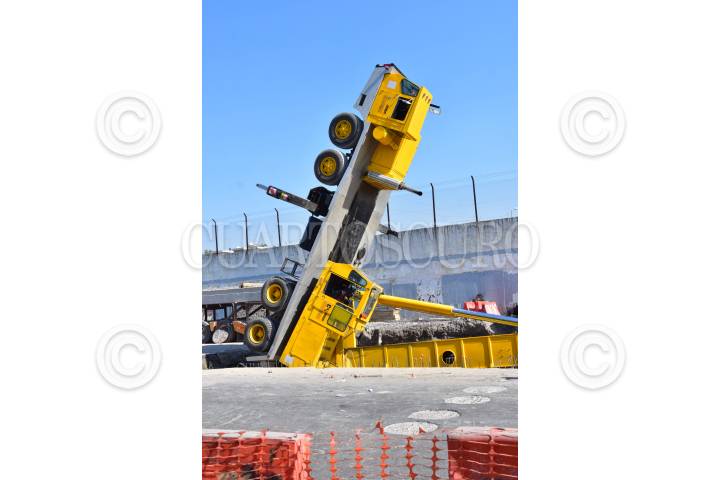 CIUDAD DE MÉXICO, 06DICIEMBRE2017.- Una grúa que era utilizada para las obras del metro Martin Carrera se volcó cuando hacía las excavaciones de la obra. Ningún trabador resultó lesionado. FOTO: ARMANDO MONROY /CUARTOSCURO.COM