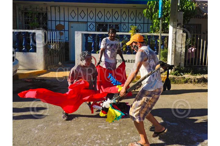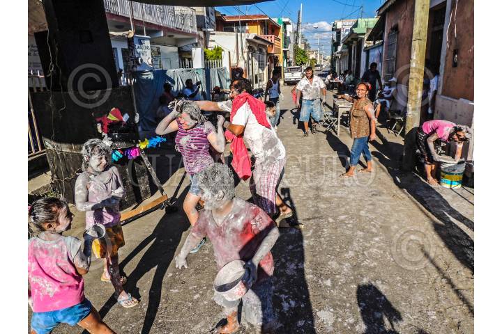 SAN FRANCISCO DE CAMPECHE, CAMPECHE, 13FEBRERO2018.- Martes de pintadera, es una de las tradiciones que forman parte del Carnaval de Campeche y que se celebra desde 1582, por lo que se le considera el más antiguo del país. En éste día, las familias campechanas se pintan unos a otros con pintura de agua, festejan, conviven y bailan huyendo del toro petate. El día de la pintadera marca el final del carnaval, un día antes de miércoles de ceniza. FOTO: MAIRA TULIA PÉREZ BOCANEGRA /CUARTOSCURO.COM