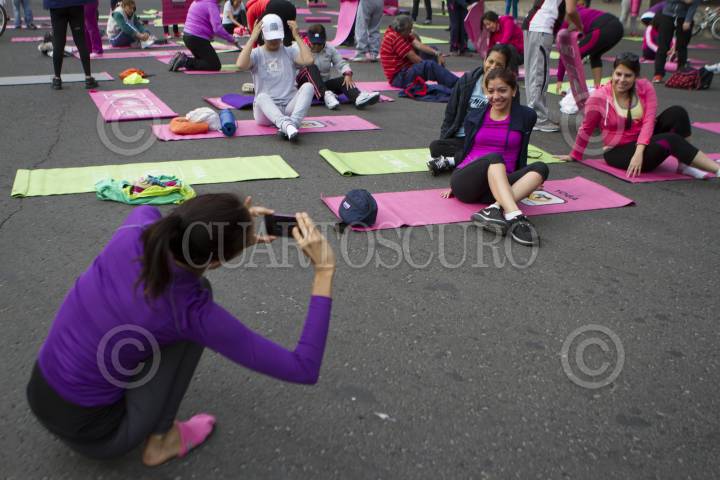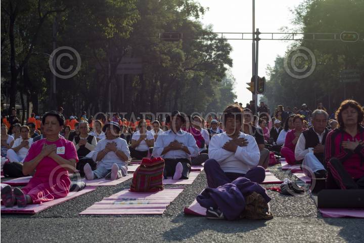 MÉXICO, D.F., 16FEBRERO2013.- Una clase masiva de yoga se llevó a cabo sobre la avenida Reforma en el Ángel de la Independencia. FOTO: IVÁN STEPHENS /CUARTOSCURO.COM