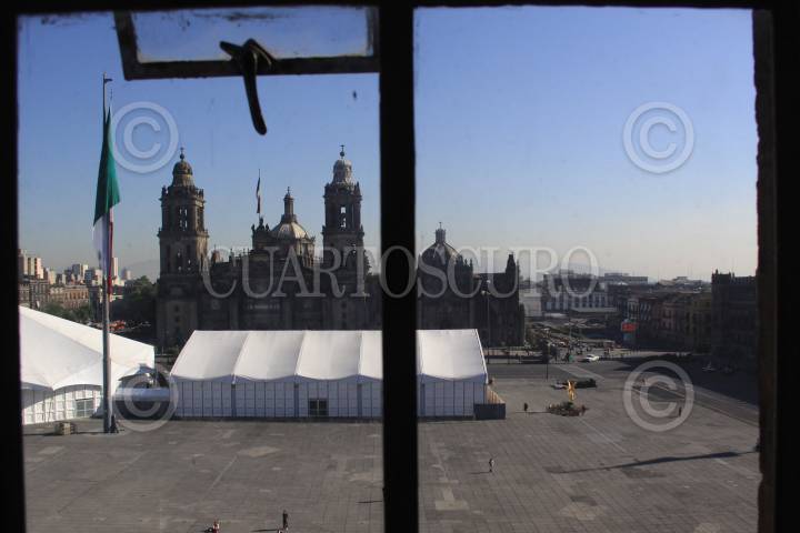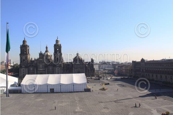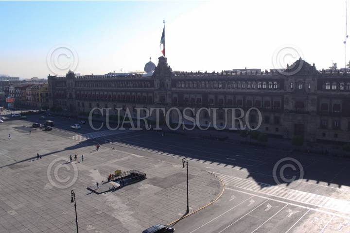 MÉXICO, D.F., 01MAYO2009.- Así luce la plancha del Zócalo capitalino este Viernes día que se celebra el día del trabajo y que este año luce vacía sin os tradicionales desfiles y mítines conmemorativos que se cancelaron para evitar concentraciones masivas de personas y la posible propagación de la influenza humana. FOTO: SÁSHENKA GUTIÉRREZ/CUARTOSCURO.COM
