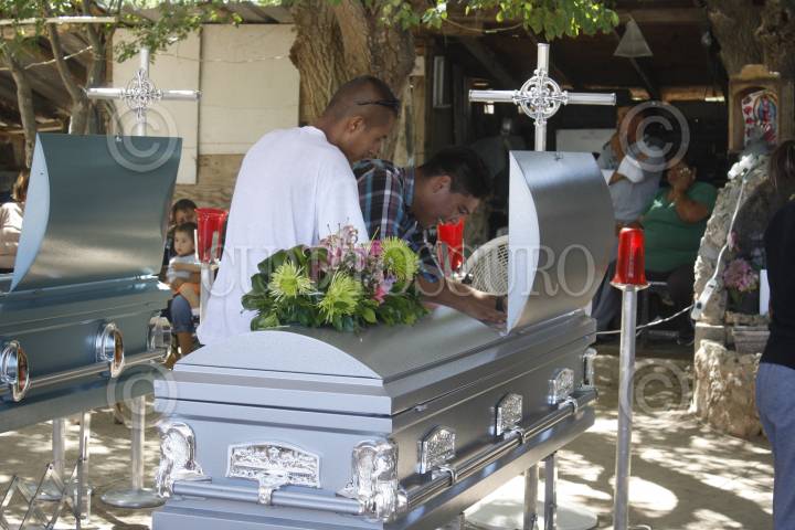 CIUDAD JUÁREZ, CHIHUAHUA, 24SEPTIEMBRE2013.- Mireya de 50 años es despedida junto con su sobrino Aarón de 17 años, también dan el ultimo adiós al primo de Aaron, Miguel de 22 años, los tres son velados en la misma casa; cabe mencionar que todas las personas vivían en el poblado de Loma Blanca y fueron asesinados cuando festejaban en su domicilio. FOTO: NACHO RUÍZ /CUARTOSCURO.COM