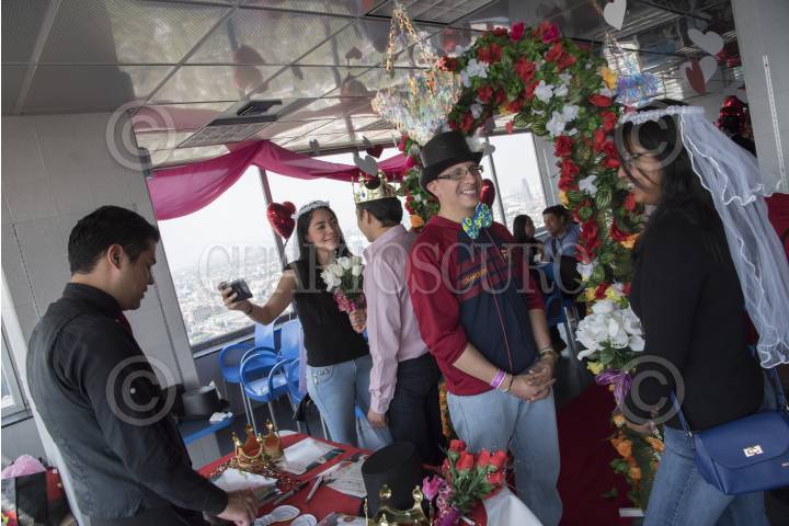 CIUDAD DE MÉXICO, 14FEBRERO2018.- Decenas de parejas asistieron al mirador de la Torre Latino para casarse en 14 de febrero, Día del Amor y la Amistad. FOTO: TERCERO DÍAZ /CUARTOSCURO.COM