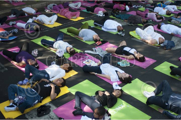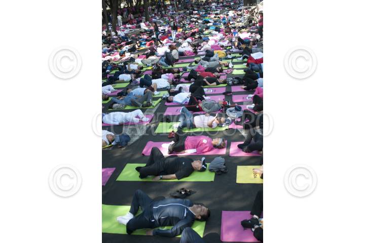 MÉXICO, D.F., 02MARZO2014.- Sobre los carriles centrales de la avenida Reforma se realizó una clase masiva de yoga. FOTO: IVÁN STEPHENS /CUARTOSCURO.COM