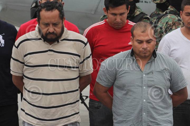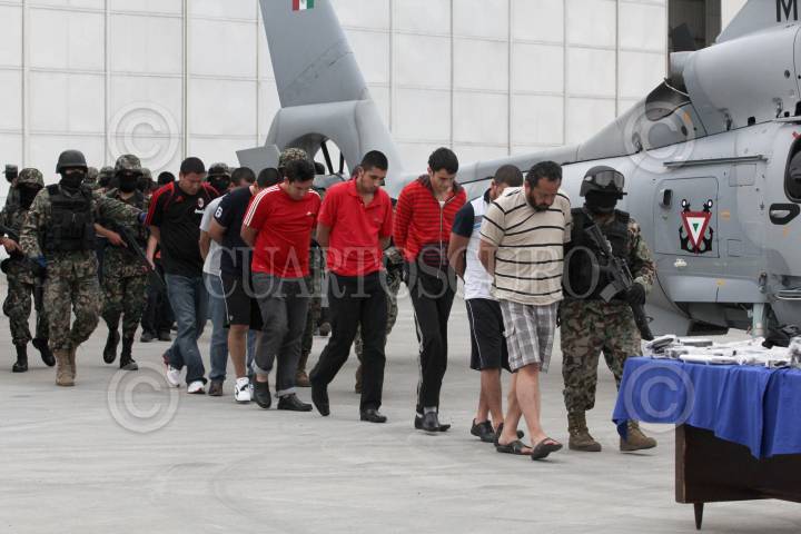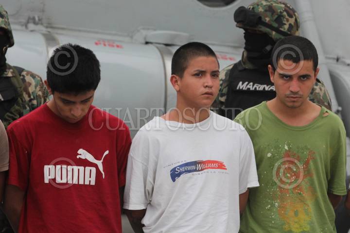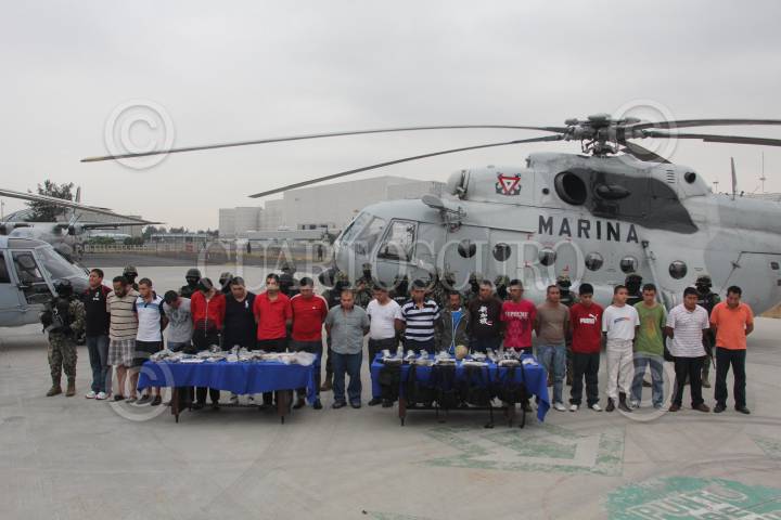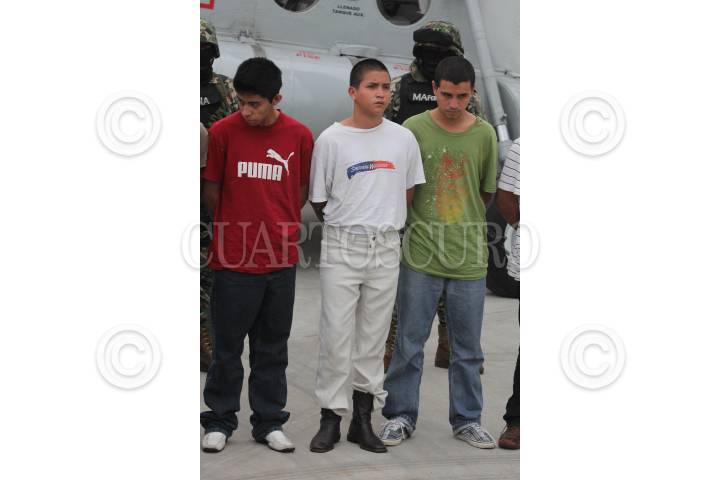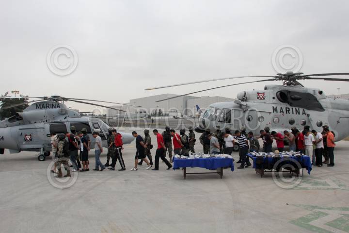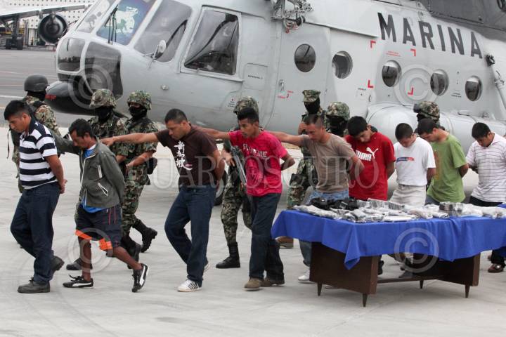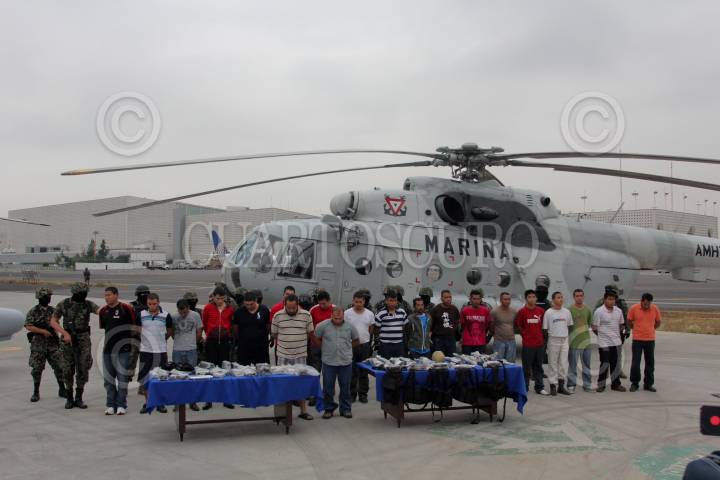 MÉXICO, D.F., 07OCTUBRE2011.- La Secretaria de Marina y Armada de México, presentaron ante los medios de comunicación a 20 personas presuntos integrantes de la organización delictiva denominada Los Zetas y del Cártel de Jalisco Nueva Generación, mejor conocidos como Matazetas. Dichos detenidos fueron aprendidos el día de ayer en diversos operativos del estado de Veracruz. Entre los 20 detenidos se encuentran los presuntos líderes en Veracruz del Cártel de Jalisco Nueva Generación, Alfredo Carmona Aranda, apodado "El Capi" y de Los Zetas, Aquiles Cruz, alias “El Comandante Chilaquil”. FOTO: SAÚL LÓPEZ/CUARTOSCURO.COM