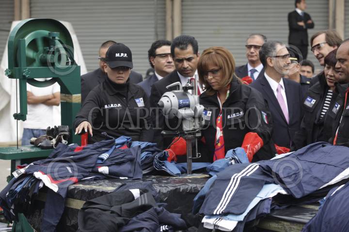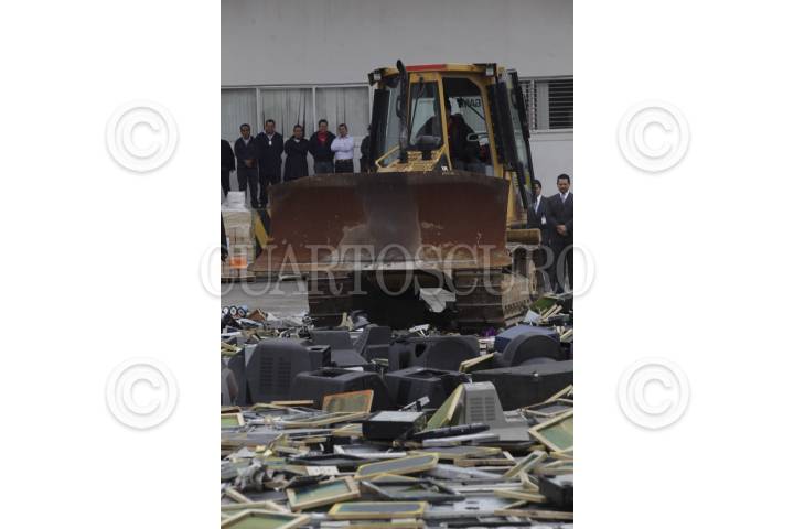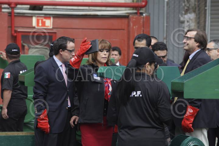 MÉXICO, D.F., 09FEBRERO2012.- Marisela Morales Ibáñez, procuradora General de la República, encabezó la destrucción de material apócrifo fueron destruidos más de 20 millones de unidades "piratas". FOTO: JUAN PABLO ZAMORA/CUARTOSCURO.COM