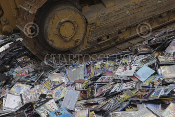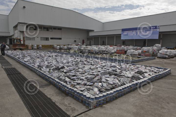 MÉXICO, D.F., 09FEBRERO2012.- Material apócrifo en las instalaciones de la Procuraduría General de la República. Esta tarde fueron destruidos más de 20 millones de unidades "piratas". La destrucción fué encabezada por la procuradora General de la República, Marisela Morales Ibáñez FOTO: JUAN PABLO ZAMORA/CUARTOSCURO.COM