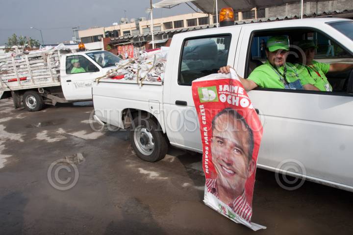 MÉXICO, D.F. 25JULIO2012.- La Secretaría de Desarrollo Urbano y Vivienda del (SEDUVI), encabezada por Felipe Leal, entregó material reciclable obtenido de propaganda electoral y anuncios publicitarios a la empresa Arpema Plastic Recycle. FOTO: JUAN PABLO ZAMORA /CUARTOSCURO.COM