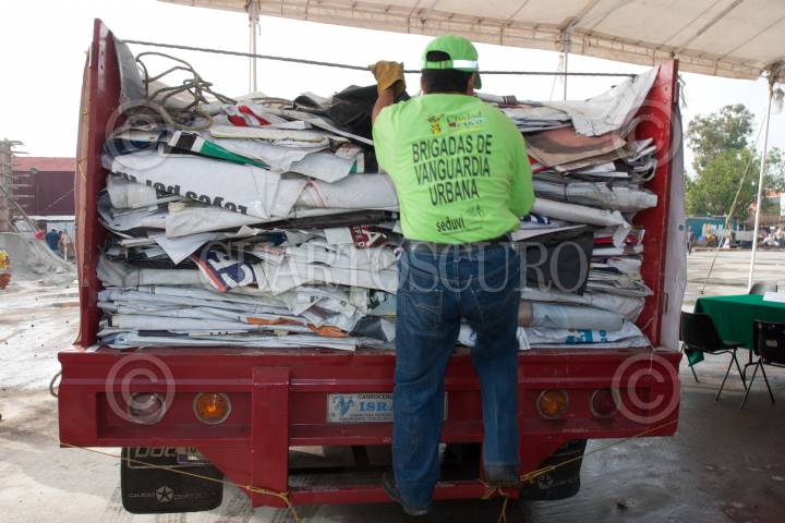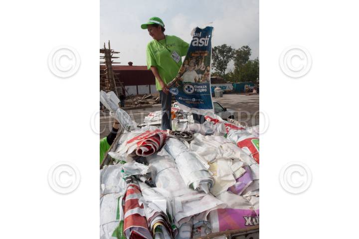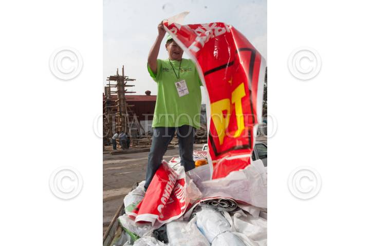 MÉXICO, D.F. 25JULIO2012.- LA Secretaría de Desarrollo Urbano y Vivienda del (SEDUVI), encabezada por Felipe Leal, entregó material reciclable obtenido de propaganda electoral y anuncios publicitarios a la empresa Arpema Plastic Recycle. FOTO: JUAN PABLO ZAMORA /CUARTOSCURO.COM