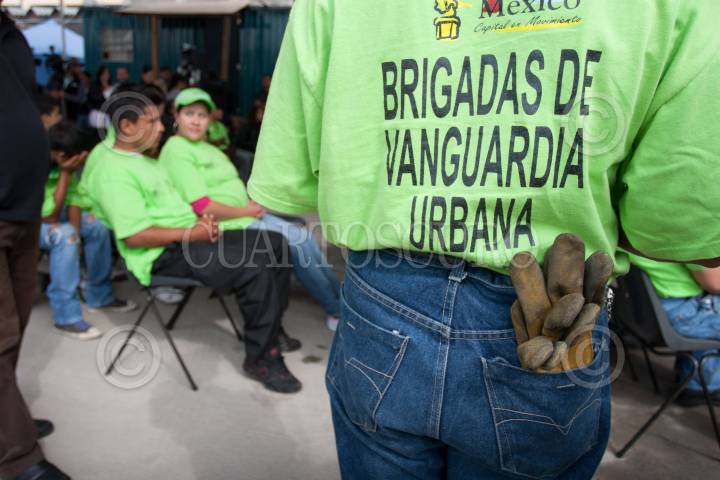 MÉXICO, D.F. 25JULIO2012.- Jóvenes infractores son empleados por la Secretaría de Desarrollo Urbano y Vivienda del (SEDUVI), para quitar el material reciclable obtenido de propaganda electoral y anuncios publicitarios. Ellos laboran dos días a la semana, en las brigradas de Vanguardia Urbana de la SEDUVI, dentro de un programa implementado por esa dependencia y la Dirección General de Tratamiento Para Adolescentes (DGTPA). FOTO: JUAN PABLO ZAMORA /CUARTOSCURO.COM