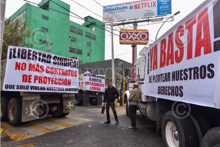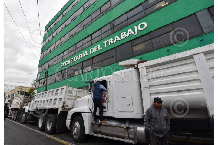 Transportistas denunciaron amenazas y se manifestaron en la Secretaría del Trabajo.