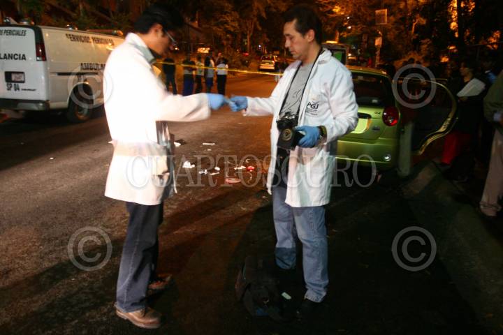 MÉXICO D.F., 16OCTUBRE2008.- Una persona perdió la vida despues de que un sujeto le disparo por varias ocaciones sobre la calle Cefiro y Av. Panamericana en la colonia Insurgentes Cuicuilco. En la imagen peritos de la procuraduria capitalina trabajan en el lugar de los hechos. FOTO: SAUL LOPEZ/CUARTOSCURO.COM