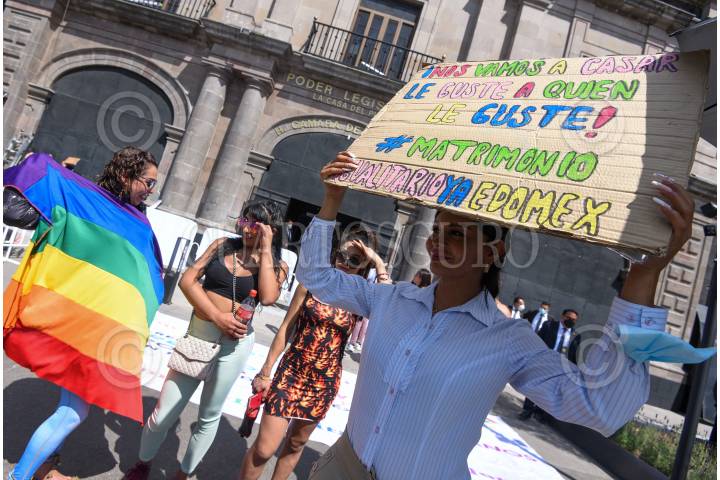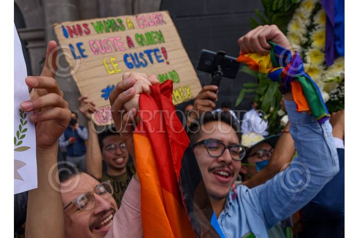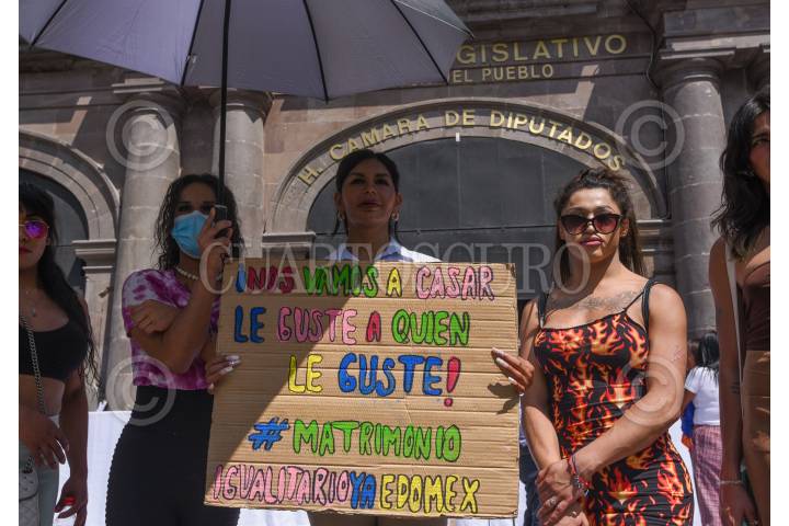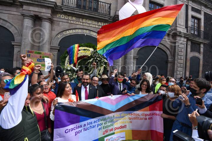 Integrantes de la comunidad LGBTTTIQ+ celebraron la aprobación del Matrimonio Igualitario en el Estado de México.