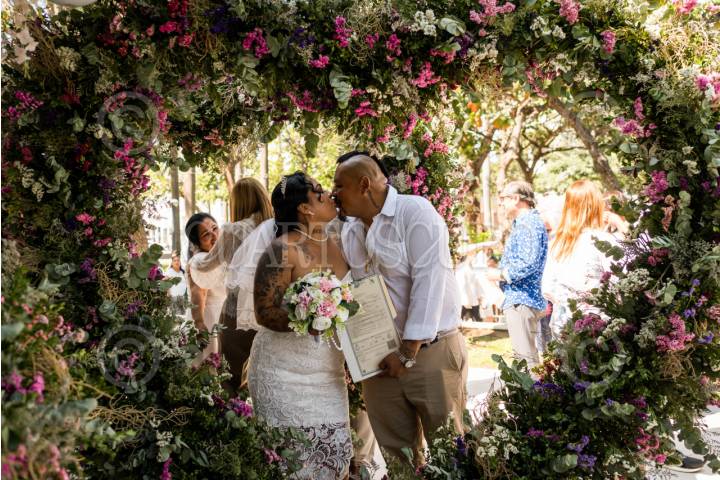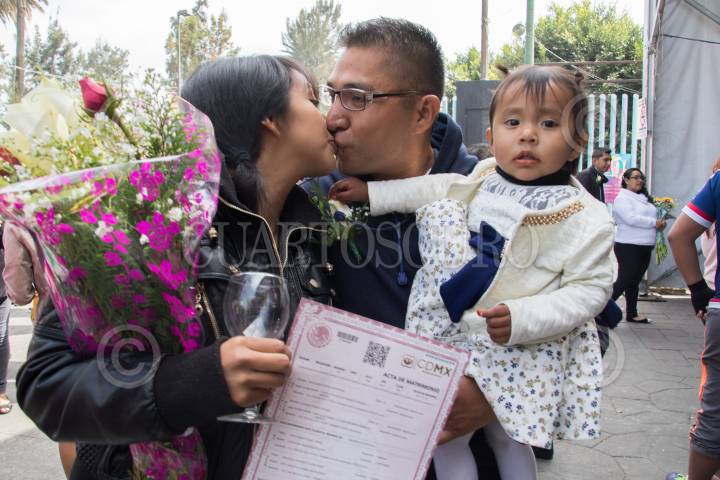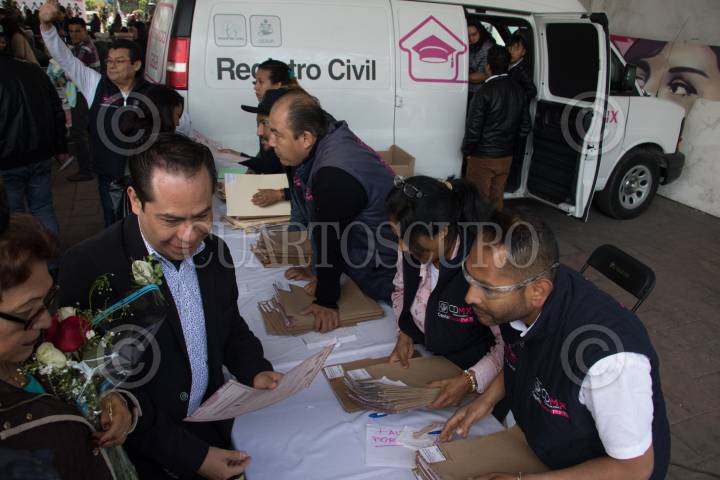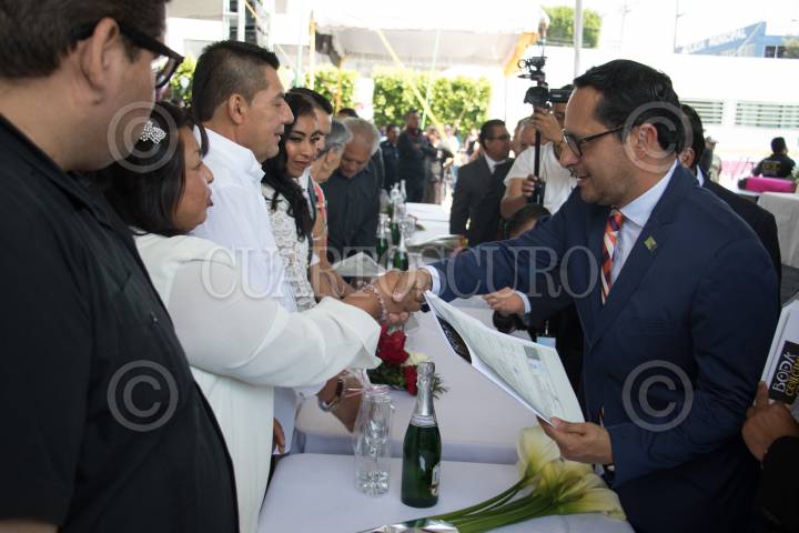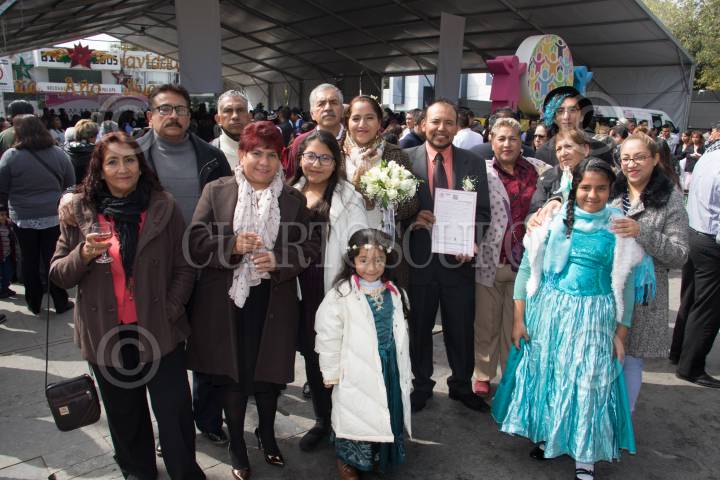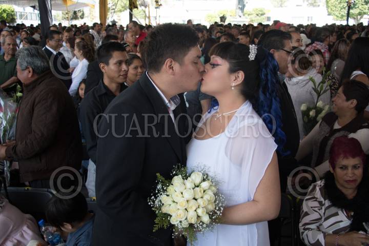 CIUDAD DE MÉXICO,02DICIEMBRE2017.- Decenas de parejas contrajeron matrimonio en una boda colectiva en la explanada de la delegación Iztapalapa, como parte del programa “Matrimonios Colectivos 2017”, los recien casados obtvieron de manera gratuita la primera copia certificada de su acta de matrimonio y un obsequio sorpresa durante la ceremonia. FOTO: SAÚL LÓPEZ /CUARTOSCURO.COM