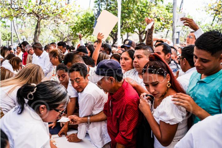 VERACRUZ, VERACRUZ. 14FEBRERO2024.- Con un nuevo récord de 1,189 parejas se realizaron las Bodas Colectivas en el municipio de Veracruz, en la gran ceremonia se contó con la presencia de la alcaldesa Patricia Lobeira acompañada del enlace de la oficina del Registro Civil, Sergio Lira, y de la directora del DIF municipal Ileana León Huesca, entre otros funcionarios que fueron testigos en el evento a través del programa de Bodas Colectivas 2024 en el marco del dia del Amor y la Amistad. FOTO: VICTORIA RAZO/CUARTOSCURO.COM