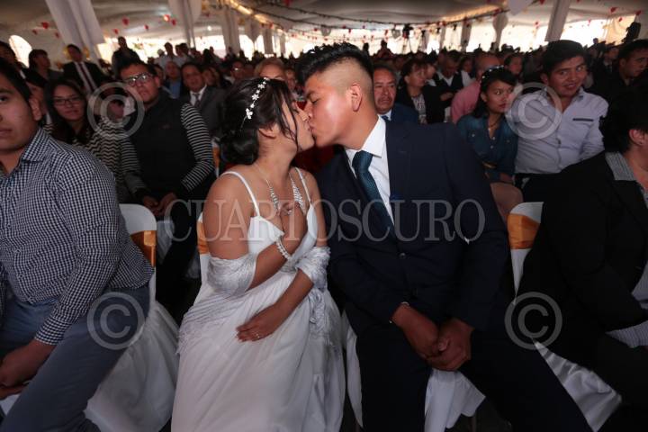 TOLUCA, ESTADO DE MÉXICO, 16MARZO2018.- Como parte de la campaña Matriminios con Valor del ayuntamiento de Toluca, 180 parejas contrajeron matrimonio, es la tercera vez que se realiza esta campaña con éxito en la capitalina Mexiquense, las parejas recibe su acta de matrimonio y con sus familias pueden disfrutar de una fiesta compartida. FOTO: ARTEMIO GUERRA BAZ /CUARTOSCURO.COM