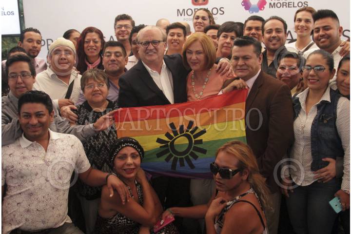 CUERNAVACA, MORELOS, 04JULIO2016.- Morelos se convirtió en el primer estado que concreta una reforma que permite el matrimonio entre persona del mismo sexo. Ante integrantes de la comunidad Lésbico, Gay, Bisexual, Transexual, Transgénero, Travesti e Intersexual (LGTTTI) el gobernador Graco Ramírez Abreu firmo la reforma. También estuvo presente en este evento Alexandra Haas Paciuc, titular del Consejo Nacional Para Prevenir la Discriminación (CONAPRED). El presidente de la Mesa Directiva del Congreso, Francisco Moreno Merino, en su intervención pidió perdón a la comunidad LGTTTI por tardar tanto en reformar la ley para que fueran iguales a todo morelense. FOTO: MARGARITO PÉREZ RETANA /CUARTOSCURO.COM