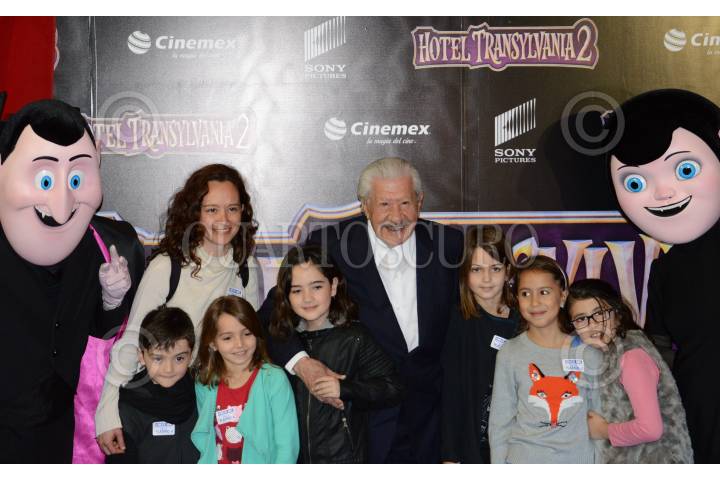 MÉXICO, D.F., 20SEPTIEMBRE2015.- Alfombra roja de la película animada Hotel Transylvania 2 previo a su estreno el próximo 25 de septiembre, durante la cual estuvieron presentes botargas de los personajes principales "Drac" y su hija "Mavis", así como los actores Mauricio Castillo, Ignacio López Tarso y Violeta Isfel. FOTO: GALO CAÑAS /CUARTOSCURO.COM