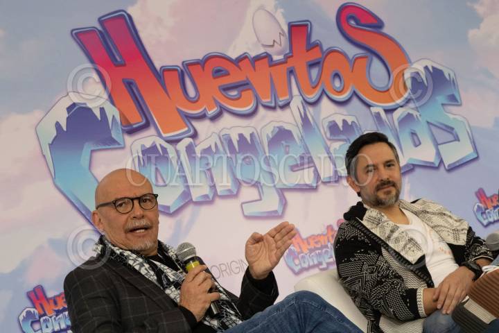 Gabriel Riva Palacio, Mauricio Castillo, y Rodolfo Riva Palacio, durante la conferencia de prensa de la película "Huevitos Congelados".