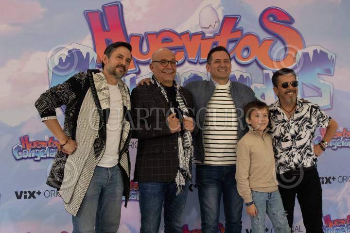 Gabriel Riva Palacio, Mauricio Castillo, Rodolfo Riva Palacio, Carlos Espejel y su hijo Fausto Espejel, durante la conferencia de prensa de la película "Huevitos Congelados".