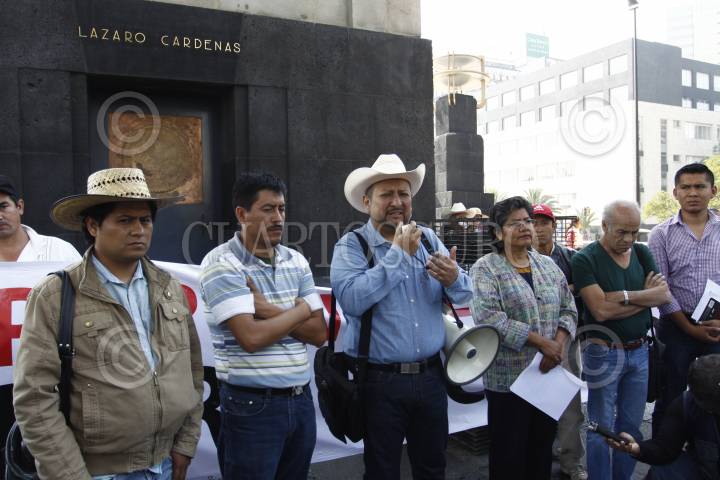MÉXICO, D.F., 06MAYO2015.- Max Agustin Correa, líder de la Central Campesina Cardenista durante una conferencia de prensa en el Monumento a la Revolución en donde denunció que las autoridades federales han hecho caso omiso a las demandas de los campesinos pobres para sacar adelante al agro mexicano FOTO: RODOLFO ANGULO /CUARTOSCURO.COM