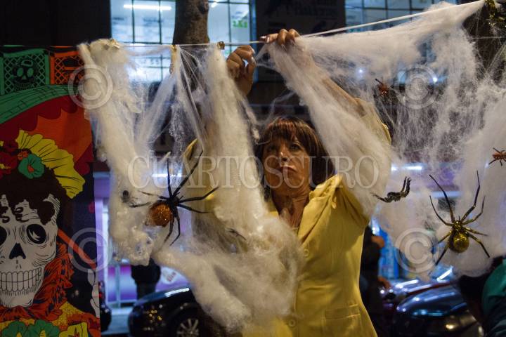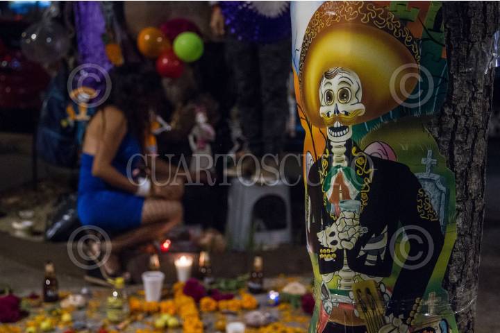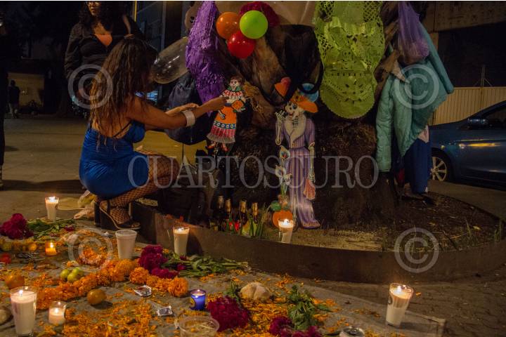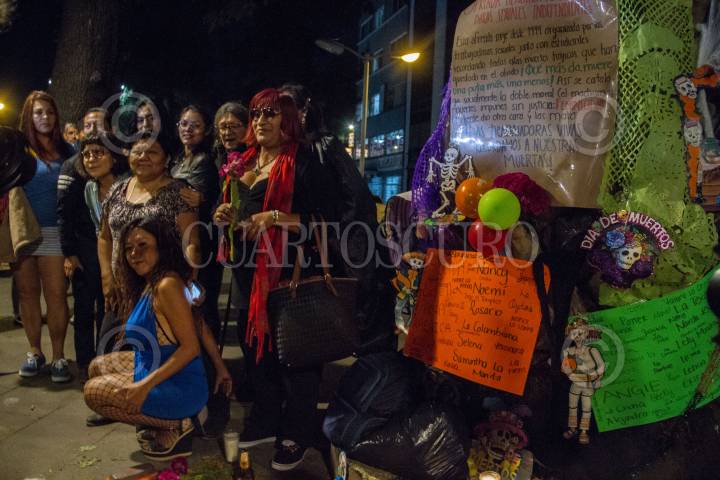 CIUDAD DE MÉXICO, 31OCTUBRE2019.- Trabajadoras sexuales, mujeres y transexuales, colocaron ofrenda frente al metro Revolución en nombre de todas sus compañeras víctimas de feminicidio por clientes, "padrotes", parejas sentimentales o familiares. Durante la colocación de ofrenda, dieron unas palabras a medios de comunicación, platicaron sobre la violencia que viven tanto física como emocional, la falta de atención médica y la apatía de las autoridades. FOTO: ANDREA MURCIA /CUARTOSCURO.COM