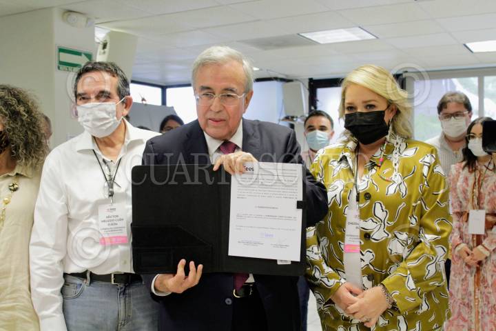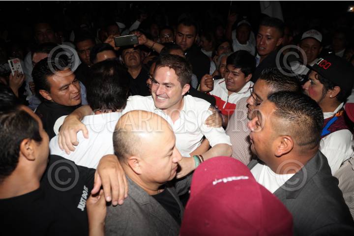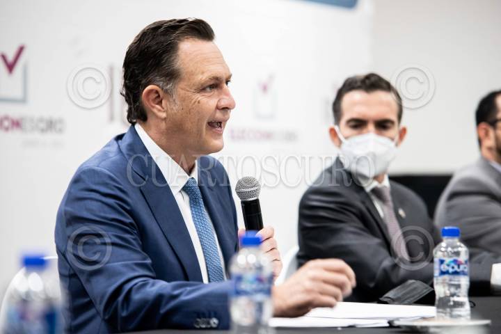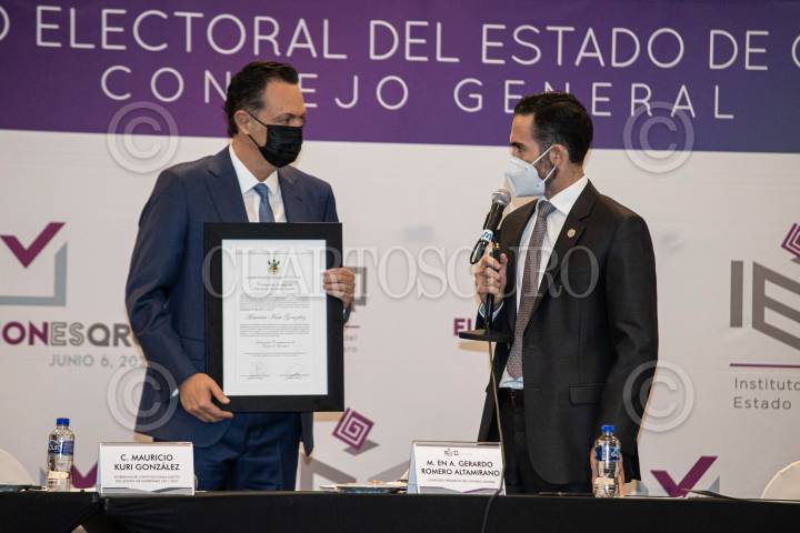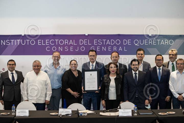 Mauricio Kuri González recibió su constancia de mayoría en las elecciones de gobernador de Querétaro, en el Instituto Electoral del Estado de Querétaro. Lo acompaño Marko Cortés, líder del PAN.