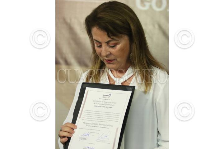 CUERNAVACA, MORELOS, 09JUNIO2024.- Sesión extraordinaria del Instituto Morelense de Procesos Electorales y Participación Ciudadana, donde se entrego la constancia de mayoría y validez de la elección de la gubernatura a Margarita González Saravia Calderón, abanderada de la coalición "Sigamos haciendo historia en Morelos" de los partidos, MORENA, PT y PVEM. FOTO: MARGARITO PÉREZ RETANA/CUARTOSCURO.COM