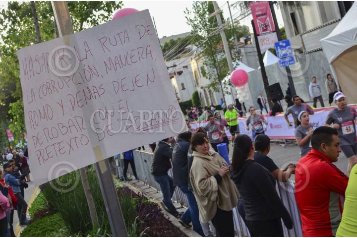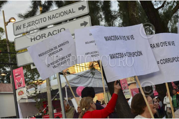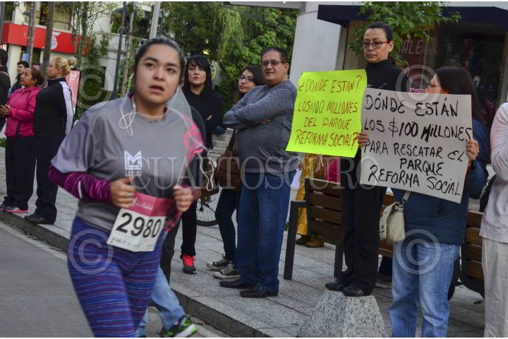 MÉXICO, D.F., 09AGOSTO2015.- Vecinos inconformes con los resultados de la remodelación de la Av. Mazaryk en Polanco, protestaron durante la carrera "Camina Mazaryk 2015", convocada por la delegación Miguel Hidalgo y el gobierno del Distrito Federal, en donde acusaron a las autoridades de incumplir con sus obligaciones, corrupción y robo de presupuesto. Además mencionaron que no fueron consultados en un inicio para arrancar con el proceso de remodelación en donde se redujo el número de carriles vehiculares para la ampliación de la acera. FOTO: MARÍA JOSÉ MARTÍNEZ /CUARTOSCURO.COM