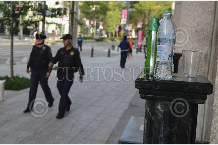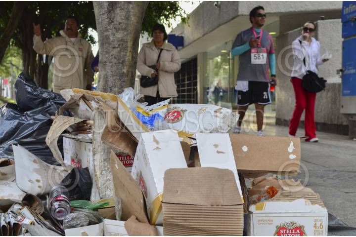 MÉXICO, D.F., 09AGOSTO2015.- Tras dos años de haber sido sometida a un proceso de remodelación, la Avenida Mazaryk, una de las principales arterias viales y peatonales de Polanco, además de una de las zonas comerciales más significativas de la capital, hoy luce, de acuerdo con vecinos que protestaron esta mañana como "un robo". Los supuestos objetivos como cableado subterráneo, aprovechamiento del espacio público en carriles centrales, reforestación de pabellones, y limpieza en general, "no fueron cumplidos", según argumentan. En un recorrido realizado sobre la Avenida Mazaryk, no fueron localizados botes de basura al menos en una distancia de 5 cuadras. FOTO: MARÍA JOSÉ MARTÍNEZ /CUARTOSCURO.COM