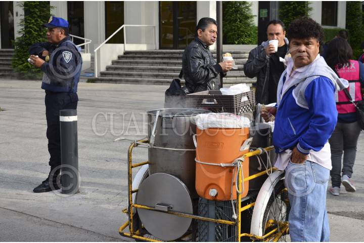 MÉXICO, D.F., 09AGOSTO2015.- La degustación de los tradicionales tamales no distingue ocupaciones ni uniformes; todos son susceptibles de comer una "guajolota" durante una mañana de domingo. FOTO: MARÍA JOSÉ MARTÍNEZ /CUARTOSCURO.COM