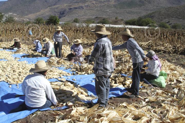 ZITLALA, GUERRERO, 12ENERO2017.- Las nanas y tatas apurados en la lona que tendieron en el suelo para echar toda la mazorca, ahí mismo la pelan y la van echando en costales para después ser trasladados hasta el último de la jornada de trabajo, sus manos de las señoras muy maltratadas por cortar la hoja de la mazorca, sus caras quemadas por el sol, su rostro cubierto con una pañueleta o sombreo. Los señores con doble camisa, para que no les pique el ajuate que se produce al cortar la mazorca, llevan unos huaraches muy desgastados, propensos a ser picados sus pies al caminar entre la milpa por alguna alacrán, así es la vida cotidiana de un campesino. Continuamos con la plática del campesino mayor, casi tenemos que sembrar más de una hectárea para que podamos ganarnos unos cuantos pesos, hay veces que no se da la milpa como se debe y se echa a perder, se invierte más de lo que se obtiene de ganancia, primero dios y con su bendición esperamos que podamos juntar unos centavitos para pagar los impuestos y poder comer frijoles con tortillas, al menos eso ya es seguro, para medio comer ya habrá durante el año, nos comenta el campesino mayor. FOTO: BERNANDINO HERNÁNDEZ /CUARTOSCURO.COM