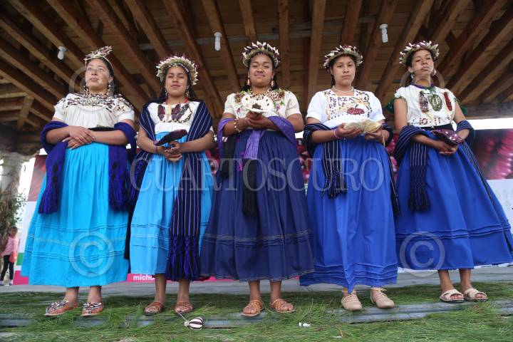 PARACHO, MICHOACAN, 12OCTUBRE2017.- Con el colorido que les caracteriza y acompañados por las notas musicales de las orquestas de la región, habitantes y autoridades tradicionales encabezaron el inicio de las actividades de la vigésima Feria de la Mazorca en la comunidad de Nurio. FOTO: JUAN JOSÉ ESTRADA SERAFÍN / CUARTOSCURO.COM