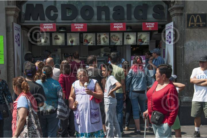 MÉXICO, D.F., 21FEBRERO2015.- Decenas de personas esperan su turno para comprar un helado en un negocio de comida rápida ante el calor que se ha sentido el día de hoy. FOTO: DIEGO SIMÓN SÁNCHEZ /CUARTOSCURO.COM