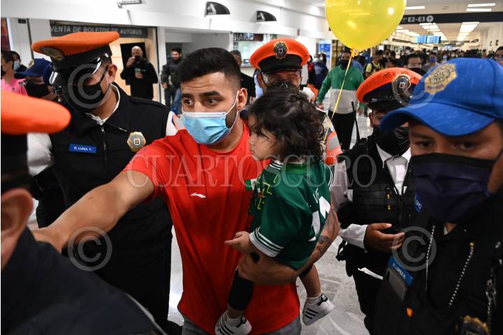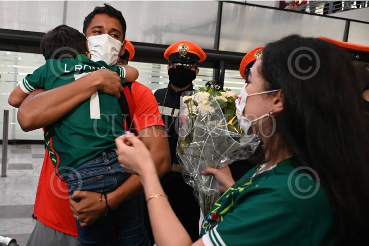 Luis Romo, mediocampista mexicano, abrazo a su familia a su arribo a la capital del país.