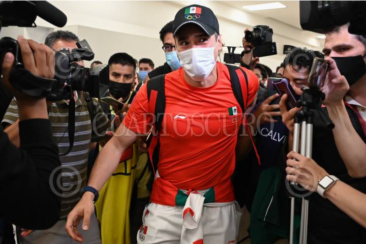 Guillermo Ochoa, portero y capitán de la selección Olímpica, sale del aeropuerto.