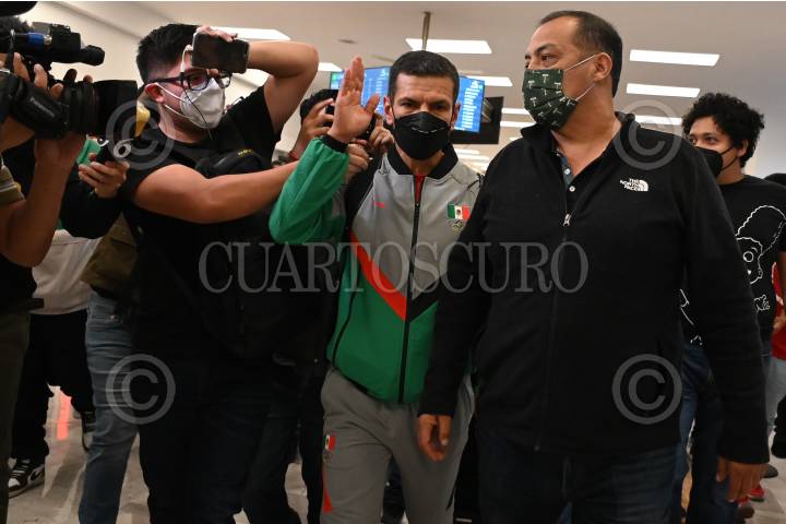 Jaime Lozano, técnico de la selección mexicana varonil olímpica, a su salida del aeropuerto.