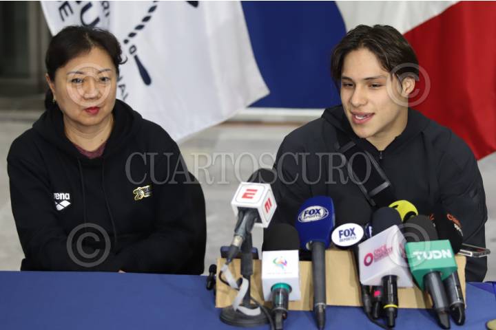 CIUDAD DE MÉXICO, 05AGOSTO2025.- El clavadista mexicano, Osmar Olvera, platicó con los medios de comunicación que lo esperara a su llegada a la capital del país, donde anunció una reunión con la presidenta de México, Claudia Sheinbaum, donde le comunicará el trabajo que está haciendo al frente de la Conade, Rommel Pacheco y solicitará un aumento de sueldo a su entrenadora, Ma Jin, quién ha recibido ofertas por otros países para que entrene a sus delegaciones en futuras competencias. FOTO: DANIEL AUGUSTO/ CUARTOSCURO.COM