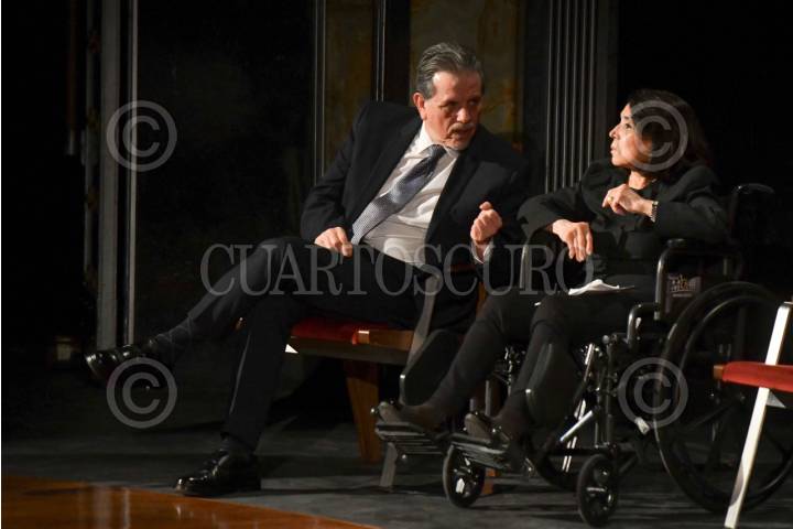 CIUDAD DE MÉXICO, 27FEBRERO2024.- Jose Manuel Valenzuela Arce, y Beatriz Espejo, durante la entrega del Premio Nacional de Artes y Literatura 2023, realizada en el Palacio de Bellas Artes. FOTO: MARIO JASSO/CUARTOSCURO.COM