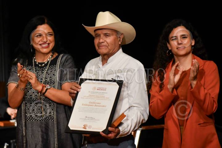 CIUDAD DE MÉXICO, 27FEBRERO2024.- Guillermo Velázquez Benavides, recibió el Premio Nacional de Artes y Literatura 2023 en el campo de Artes y Tradiciones Populares, durante ceremonia realizada en el Palacio de Bellas Artes, con la presencia de Alejandra Frausto, secretaria de Cultura, y María Luisa Alcalde, secretaria de Gobernación. FOTO: MARIO JASSO/CUARTOSCURO.COM