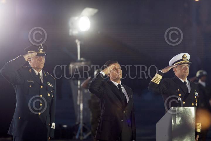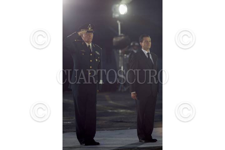 MÉXICO, D.F., 19SEPTIEMBRE2013.- En la ceremonia para recordar a las víctimas del sismo de 1985, el Presidente de la República, Enrique Peña Nieto, estuvo acompañado por los Secretarios de la Defensa Nacional y de Marina, Salvador Cienfuegos Zepeda y Vidal Francisco Soberón Sanz, respectivamente; el Comisionado Nacional de Seguridad Pública, Manuel Mondragón y Kalb; el Jefe del Estado Mayor Presidencial, Roberto Miranda Moreno, y el Coordinador Nacional de Protección Civil de la Secretaría de Gobernación, Luis Felipe Puente Espinosa. FOTO: PRESIDENCIA /CUARTOSCURO.COM