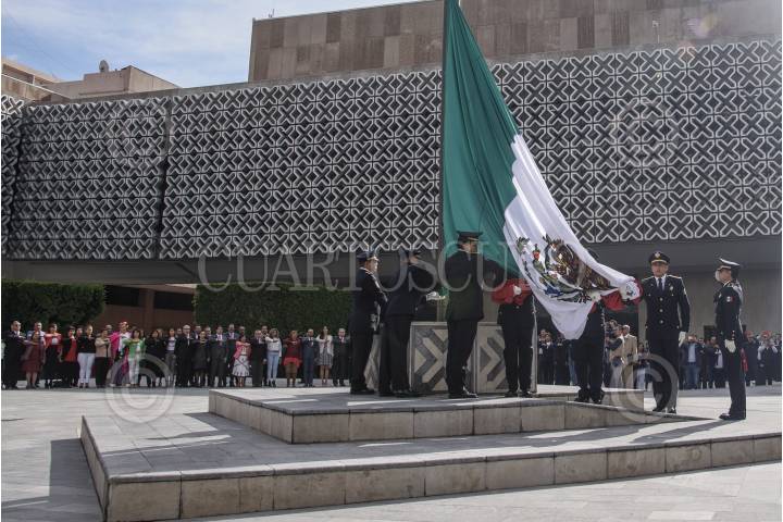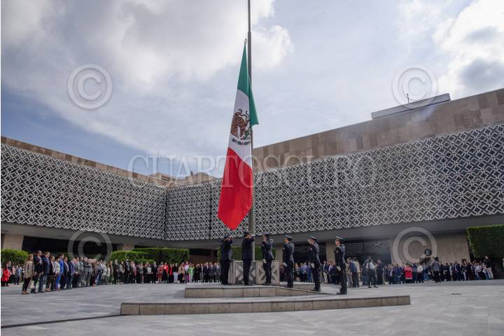 CIUDAD DE MÉXICO, 02OCTUBRE2019.- Se realizó la ceremonia de izamiento a media asta en la Cámara de Diputados con motivo del 51 aniversario de la matanza durante el movimiento estudiantil del 2 de octubre. FOTO: MARIO JASSO /CUARTOSCURO.COM