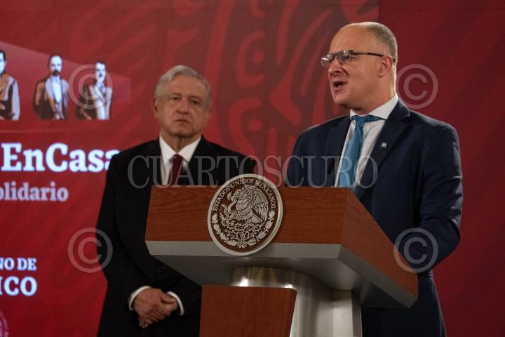 Cristian Morales fuhrimann, representante de OPS/OMS, durante la conferencia matutina en Palacio Nacional