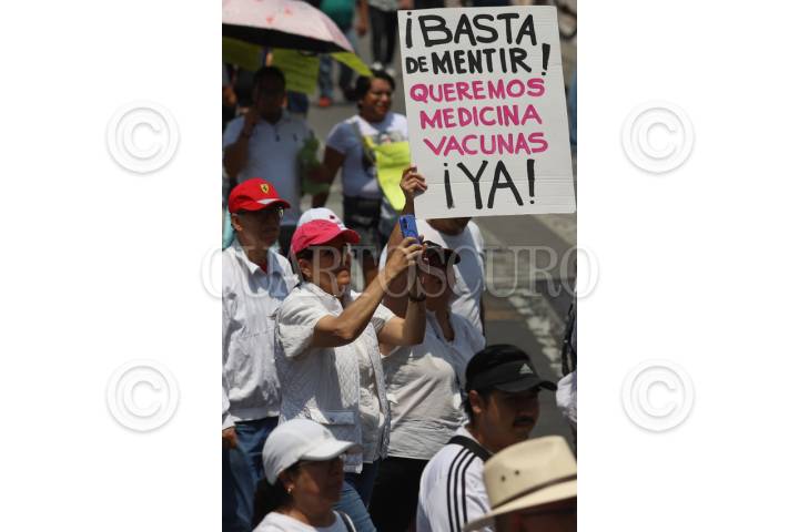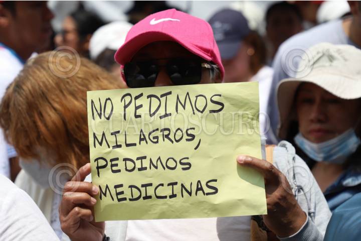 CIUDAD DE MÉXICO, 10AGOSTO2025.- Asistentes a la marcha Queremos Medicinas llevaron cárteles donde pedían el regreso del sistema de salud de sexenios anteriores. FOTO: DANIEL AUGUSTO/ CUARTOSCURO.COM