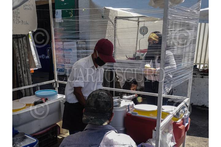 Puestos comerciales en la zona de “El Molinito” han implementado e improvisado medidas de sanidad frente a la pandemia por coronavirus que se vive en el país.
